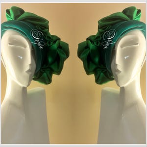 And thus, one of my favorites. The design is sure to be a showstopper as you step out to your special occasion. The hat is adorned with pink feathers which are very light and airy. A crystal jewel piece was added to the forefront to put the finishing touches on this fabulous piece. The inside is encased with a french lining. A must have to any wardrobe.....ENJOY!
